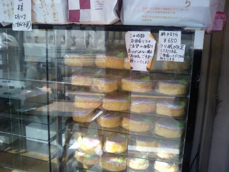 桃の節句までまだ3日以上あるのに既に並んでます。 普通の状態でないのがわかるでしょうか。 ここはこの時期になるとこんな風になります。 店内はこうなってます。 オール桃カステラ! しかも予約だらけ! いつものメインショーケースには和菓子がタクサンならんでいますが、 この時期は、こんな感じになります。↓↓↓↓ ありません。 何も。 やはり相当忙しいみたいです ![]() で、そんな状況のようですが、昨日ですがゲットしました! まず全体ショット ![]() ![]() 真上からです。