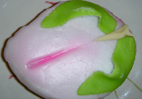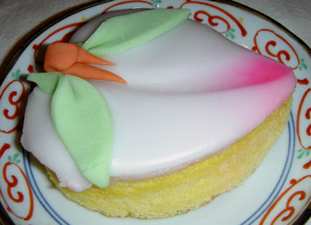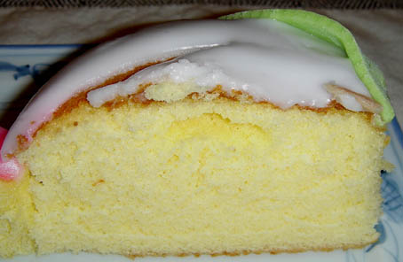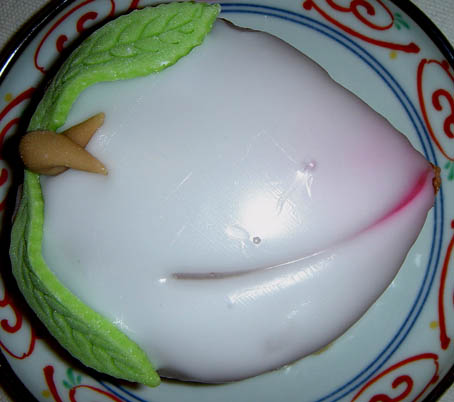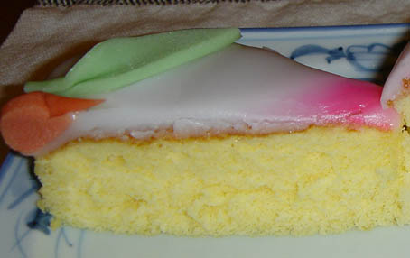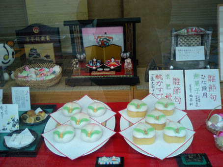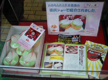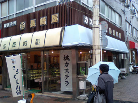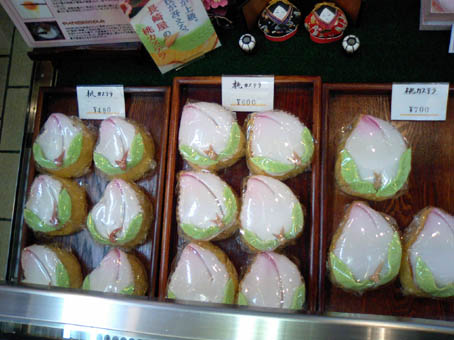 まず、千寿庵長崎屋さんの桃カステラ。 カステラ部分が厚めです。葉っぱにも綺麗な模様が施されています。 葉のキザキザ・葉脈まで表現されています。 桃の形は、細めの割れ目が向って左側にあります。 先端部分はウッスラとピンクです。 上の砂糖部分はしっとりと溶ける様な食感でした。 味は、美味! こちらは、岩永梅壽軒さんの桃カステラです。 カステラ部分、はしっとり感抜群です。葉っぱは和菓子職人らしい小技が光ります。 葉っぱのシナリ具合を巧みに凝らしています。 桃の形は、太めの割れ目がほぼ真ん中にあります。 先端部分がハッキリとピンクです。 上の砂糖部分は、“砂糖菓子”といった食感でした。 味は、美味! 今日は、朝っぱらから豪華なオヤツを頂きました。 どちらも美味しいですね! まだまだ、和菓子屋さんは桃カステラで忙しいようです。 ひな祭りのお返し等でも贈ったりしますからね。 お次は、端午の節句。鯉菓子ですね。楽しみです。 中通りに「岩永梅壽軒」さんがあります。老舗です。