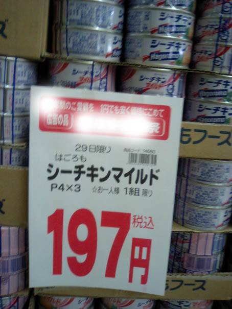 最近ツナ缶が安売りに出ないのです。 ようやく最近○○キョウさんと○○ナさんのチラシに シーチキンマイルド3缶200円が載りました。○○ナさんは15時からの タイムセール、どちらも1人1セット(3個)限定です。日曜日です。 楽しみだ。 以前買ったシーチキンは食べてしまったので、3本130円のイワシのチクワを 16時の間食用に1.5本食べていました。 意地でもプロテインに頼らないつもりです。 本日のメニュー ツイスティングカール/上腕二頭筋 各10kg 15回 *インターバル各90秒 ツイスティングカール/上腕二頭筋 各10kg 15回 *インターバル各90秒 ツイスティングカール/上腕二頭筋 各10kg 10回 ショルダープレス/三角筋 左右各8kg 15回 *インターバル各90秒 ショルダープレス/三角筋 左右各8kg 15回 *インターバル各90秒 ショルダープレス/三角筋 左右各8kg 15回 プリーチャーカール/上腕二頭筋 8kg 左右各15回 *インターバル各90秒 プリーチャーカール/上腕二頭筋 8kg 左右各15回 *インターバル各90秒 プリーチャーカール/上腕二頭筋 8kg 左右各15回 サイドレイズ/三角筋中央部 各8kg 15回 *インターバル各90秒 サイドレイズ/三角筋中央部 各8kg 15回 *インターバル各90秒 サイドレイズ/三角筋中央部 各8kg 10回 トライセプスキックバック/上腕三頭筋 各8kg 10回 *インターバル各90秒 トライセプスキックバック/上腕三頭筋 各8kg 10回 *インターバル各90秒 トライセプスキックバック/上腕三頭筋 各8kg 10回 *** 所要時間40分 *** ウェイトアップは目指していなのでコレで十分なのです。