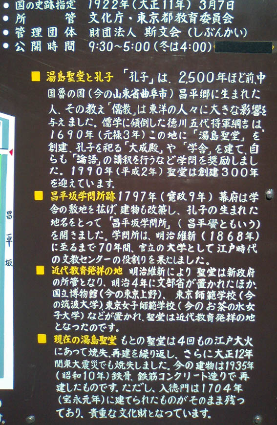 あったというお話をブログアップしました。 じゃ、他の「聖堂」ってなんじゃ?ということで、東京出張の空いた時間を利用し、 湯島天神→湯島聖堂→護国寺と行ったわけですが、本日は2箇所目の湯島聖堂に ついてです。 本来は正面の門から入るべきなのですが、湯島天神から歩いて来たので 聖堂の西側から入りました。 東京の一等地ですが、敷地が広いです。 私のように正面から来なかった 人のために、キチンと案内板が あります。 御茶ノ水大・筑波大などの原点 なんですね ![]() 杏壇門です。全体が黒っぽく 厳かな雰囲気です。 筑波大学の行事があってる ようでした。 その関係もあってか、本堂 である大成殿は閉められ ていました ![]() せっかく来たのに残念です